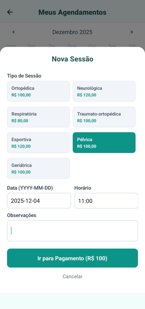 A Agenda Avançada Inteligente foi criada para facilitar a rotina de clínicas e profissionais da saúde, oferecendo uma experiência prática e segura tanto para o paciente quanto para o fisioterapeuta. Integrada ao Mercado Pago, ela permite receber diferentes formas de pagamento com total confiabilidade, tornando o processo mais simples e acessível. Seu uso é intuitivo, garantindo que qualquer pessoa consiga aproveitar todas as funcionalidades sem dificuldade. Além disso, a agenda gera automaticamente um resumo mensal com dados completos sobre agendamentos realizados, cancelamentos e valores faturados, proporcionando uma visão clara e organizada do desempenho financeiro e operacional da clínica.