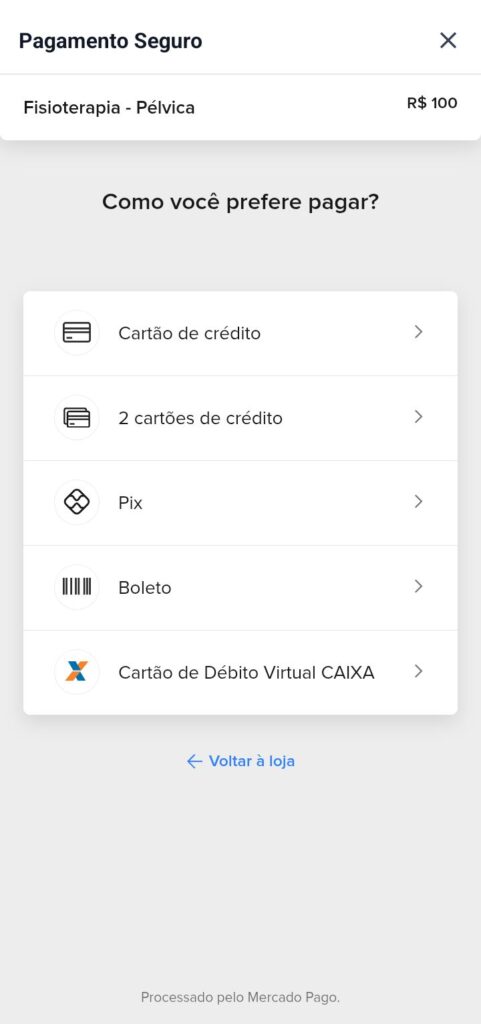 Opções de pagamento via mercado pago: