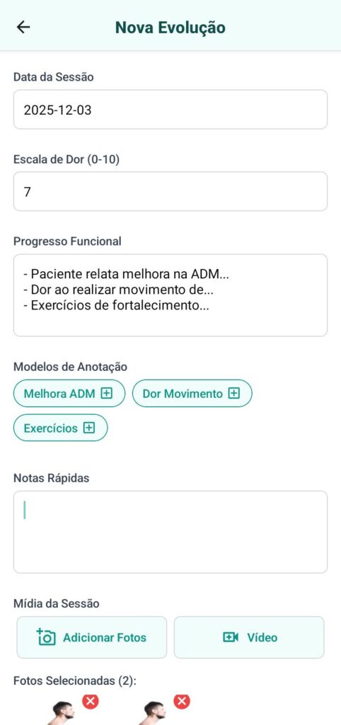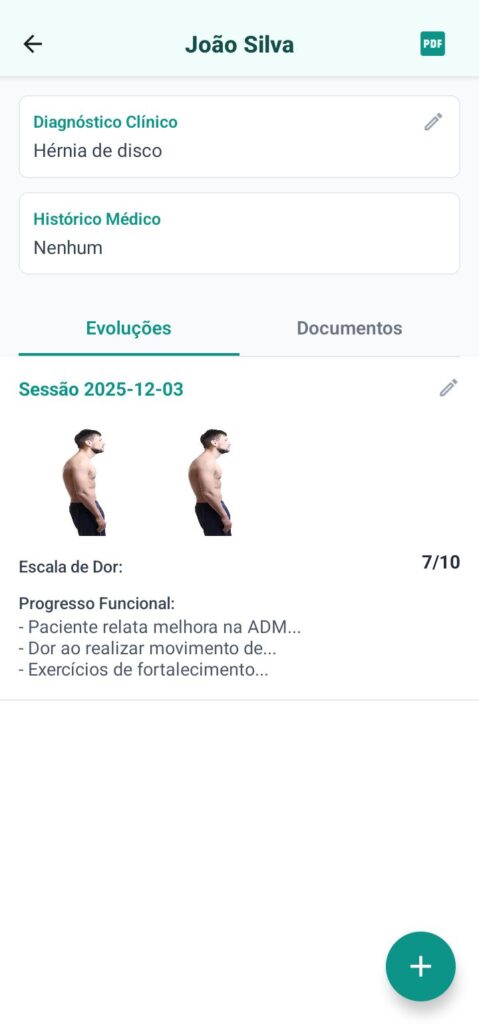 O prontuário é a base de qualquer profissional da saúde que busca organização e eficiência no atendimento. Pensando nisso, desenvolvemos um prontuário digital de fácil utilização, totalmente integrado à evolução do paciente em cada sessão. Nele, é possível armazenar fotos, vídeos e documentos de forma segura e protegida, garantindo que todas as informações estejam centralizadas e acessíveis quando necessário. Além disso, o sistema permite compartilhar as evoluções diretamente com os pacientes, oferecendo transparência no acompanhamento e fortalecendo a relação de confiança entre profissional e paciente.