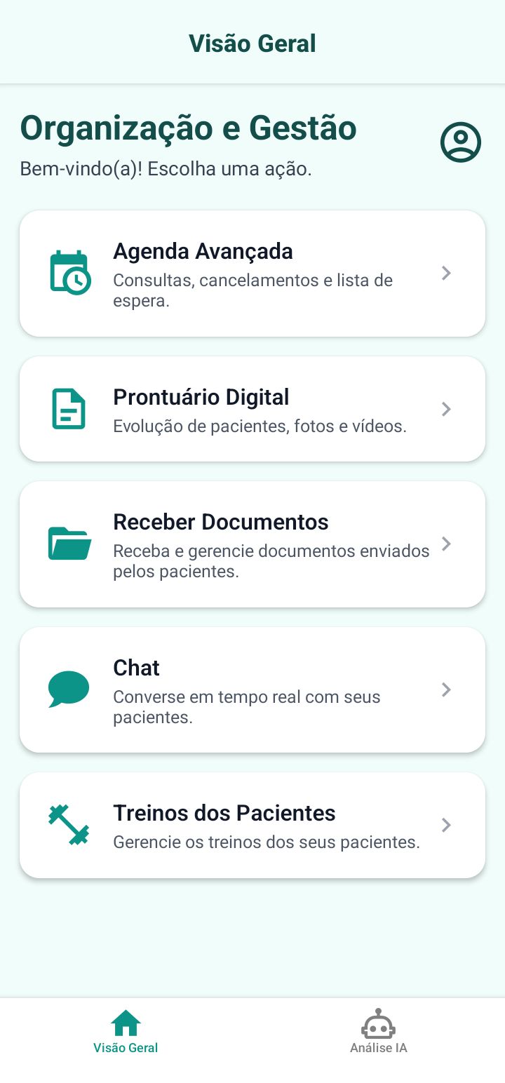 O grande diferencial está na integração de ferramentas de inteligência artificial. Uma delas realiza análise postural a partir de fotos, permitindo uma triagem precisa e a geração de treinos específicos para corrigir os principais problemas identificados. A outra é um gerador automático de treinos, que cria planos de exercícios de acordo com os objetivos do paciente ou do profissional, levando em consideração o histórico clínico e condições de saúde, assegurando segurança e eficácia.